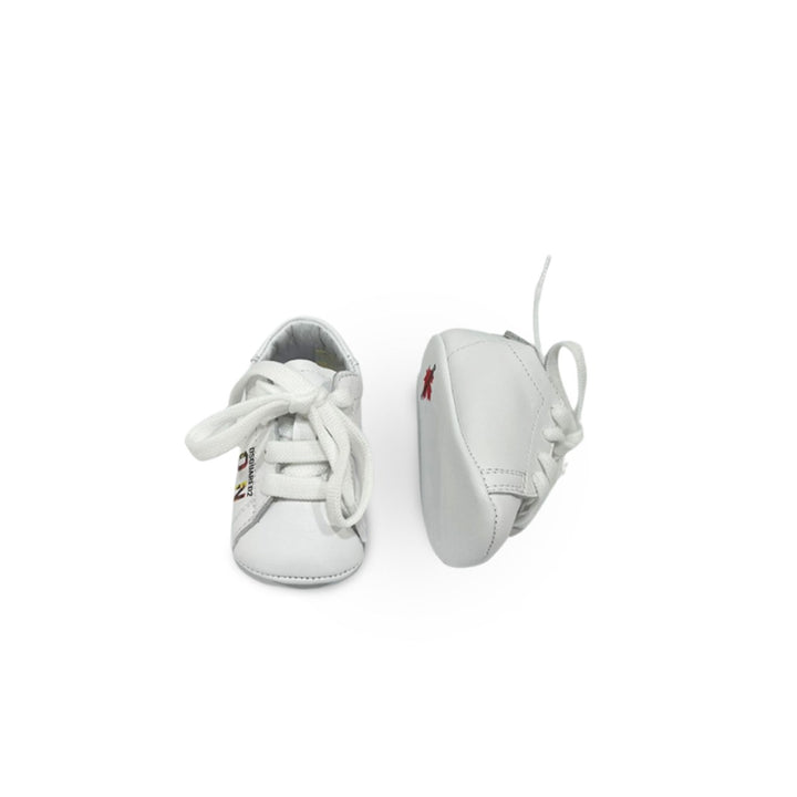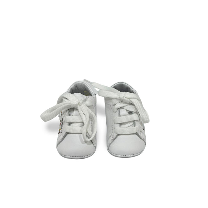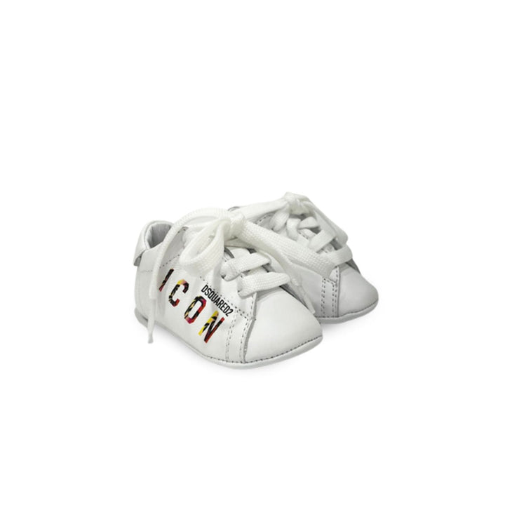 These sweet pre-walker trainers form Dsquared2 are perfect for your baby boy. In a crisp white shade the shoes have smooth soles with the brand logo in black. The shoes fasten with laces which feature the brand logo spread acr