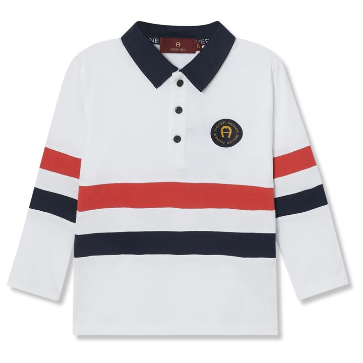 Classic and comfortable, this white logo polo T-shirt from Aigner is a smart choice for your baby boy. Made from 1% soft cotton, it features a traditional collar, button placket, and subtle logo detailing perfect for both casual and dressed-up looks.