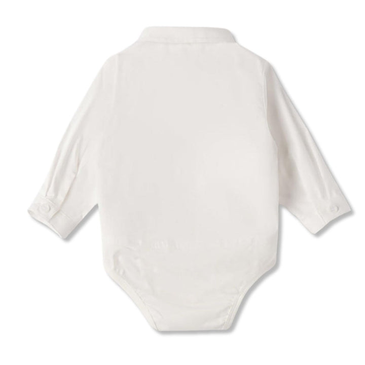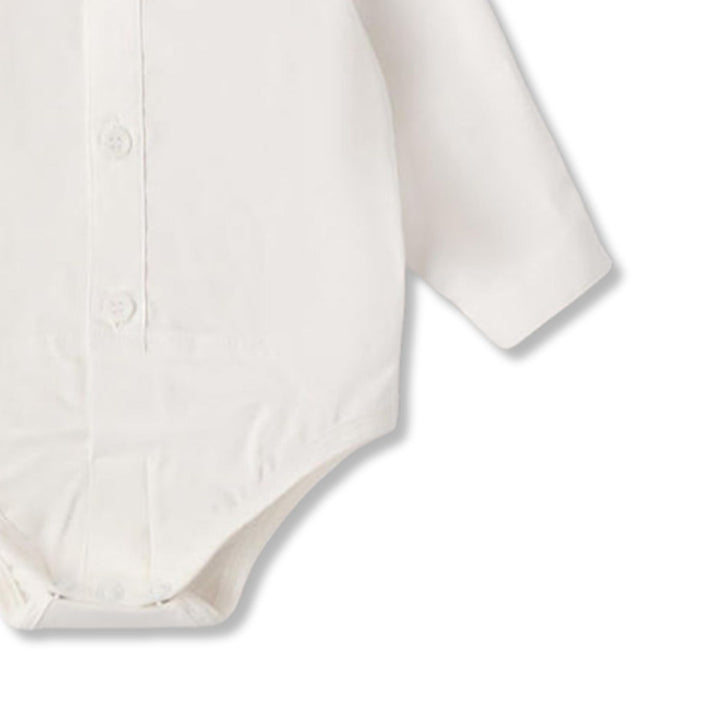 This white romper features a bold logo print for a modern look. Made from soft, breathable cotton, it ensures gentle comfort against delicate skin. Designed with convenient snap buttons, it allows easy dressing and quick changes perfect for everyday