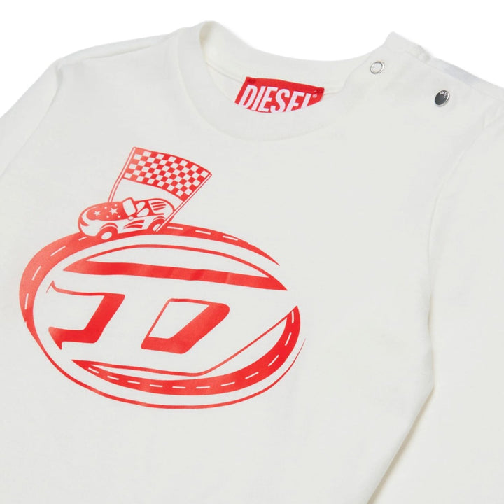 Clean and stylish this white Diesel T-shirt features a bold logo print. Perfect for casual, everyday outfits.