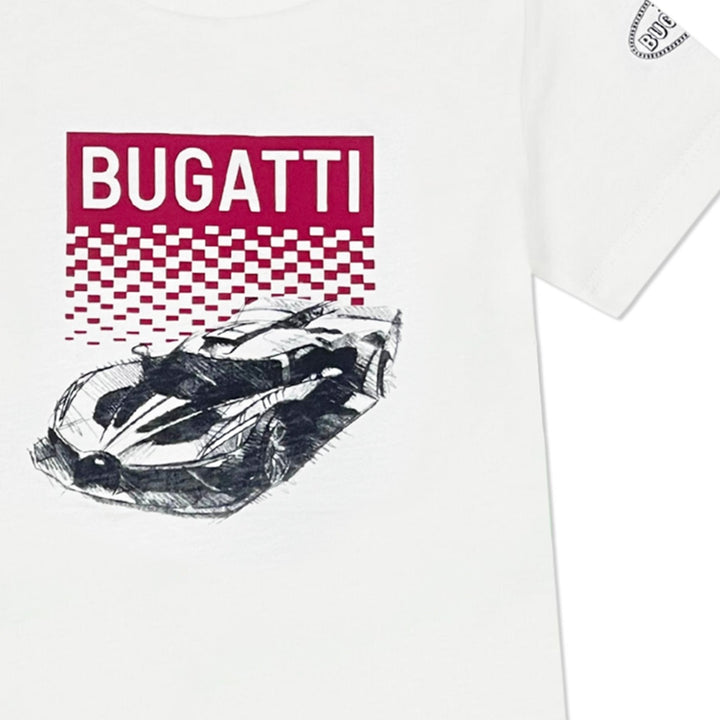 This crisp white Bugatti T-shirt features a bold sports car print, capturing the thrill of speed and style. Perfect for baby boys with a taste for iconic luxury.