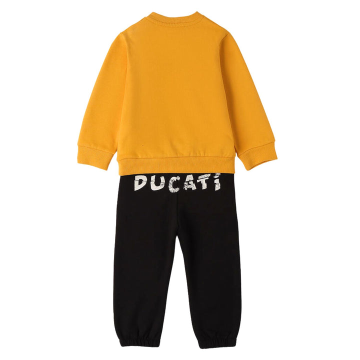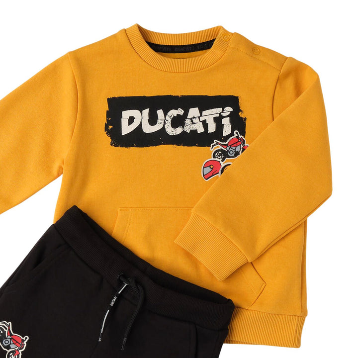This Baby Boys Yellow & Black Logo-Print Trouser Set by Ducati blends comfort and style with soft fabric, bold logo detailing, and a striking color combination for a refined everyday look.