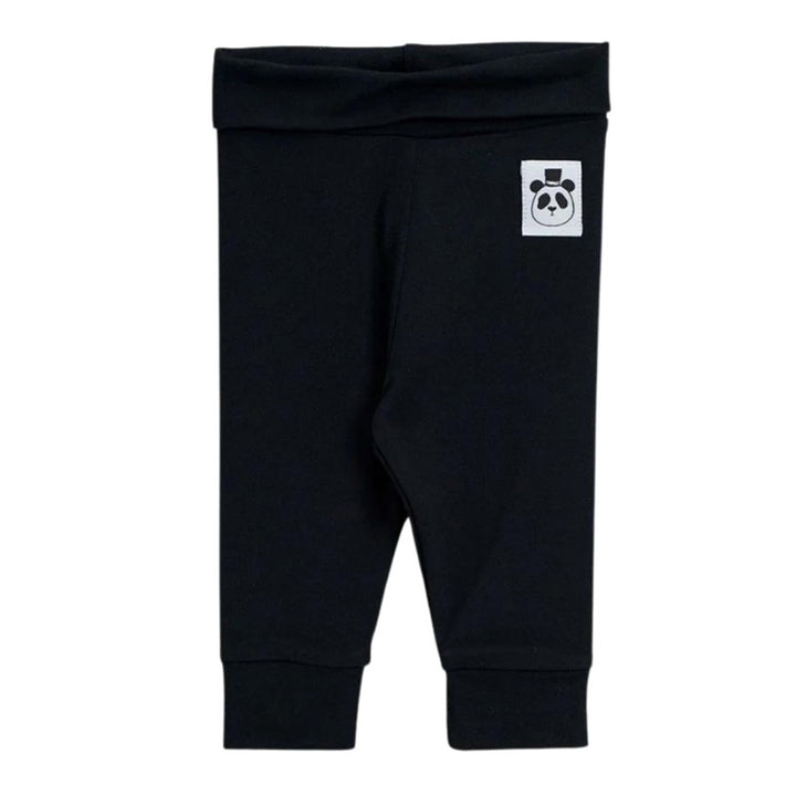 Black leggings made in soft Lyocell with a hint of stretch for comfort. Featuring a sewn-on Mini Rodini Panda label in the front. The leggings are designed in Mini Rodini newborn-model, made to fit the littlest ones. They feature soft cuffs at the a