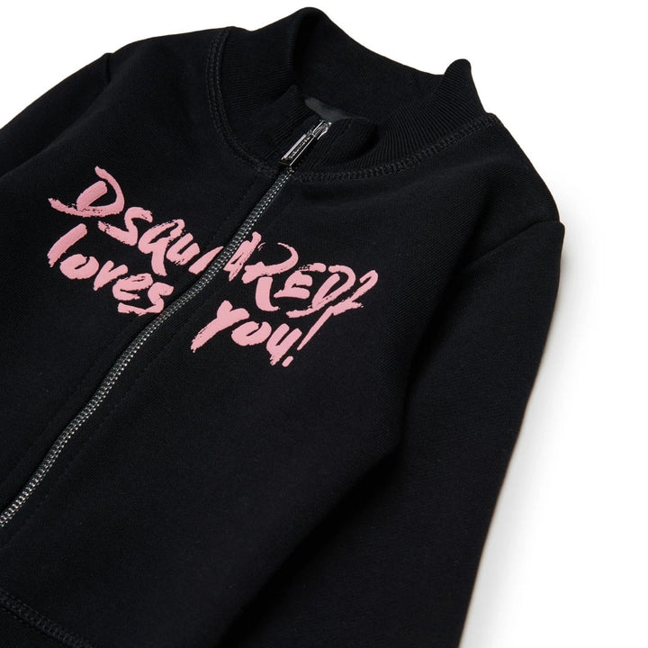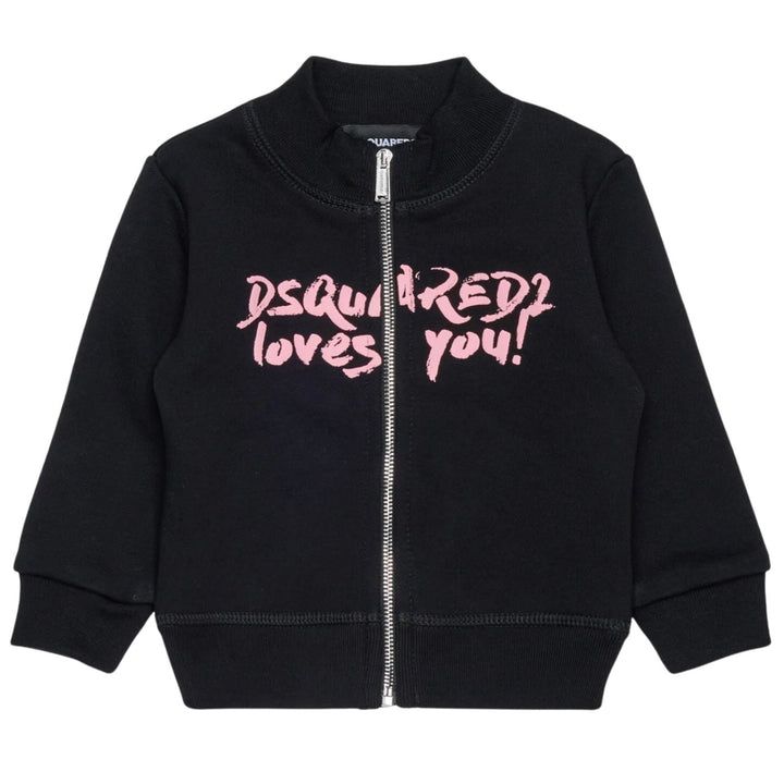 Baby Girls Black Zip-Up Logo-Print Sweatshirts