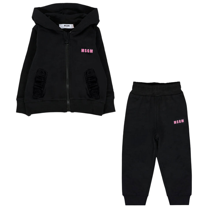 Baby Girls Black Zip-Up Logo-Print Tracksuit