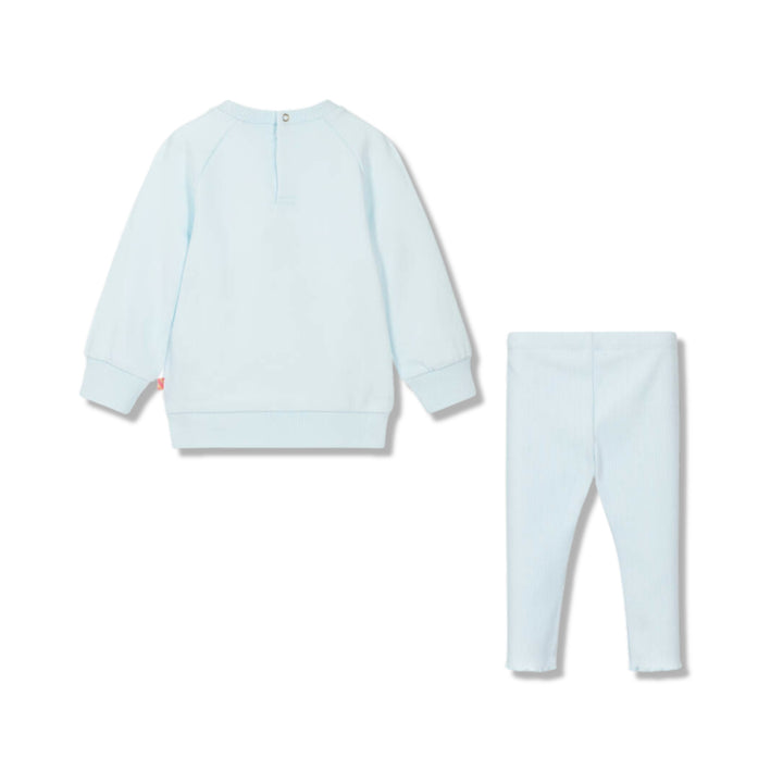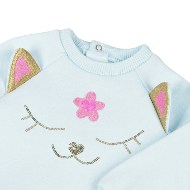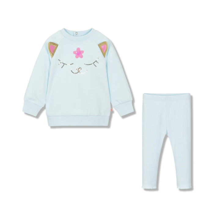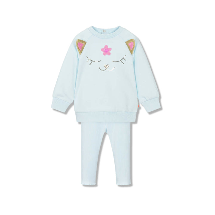 Adorable for baby girls, a pale blue leggings set by Billieblush. Made in soft, stretchy jersey, both pieces provide lasting comfort on delicate skin. Designed in a longer length, the mid-weight cotton sweatshirt has a cute cat face embroidered on th