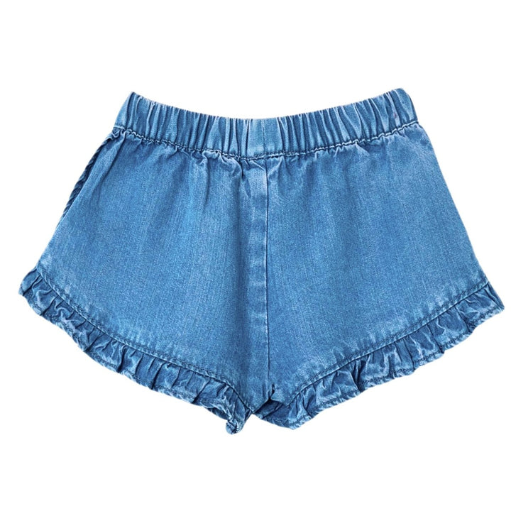 Baby Girls Blue Ruffled Hem Chambray Shorts