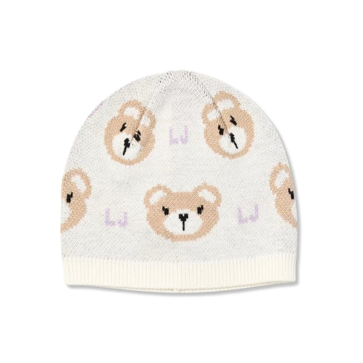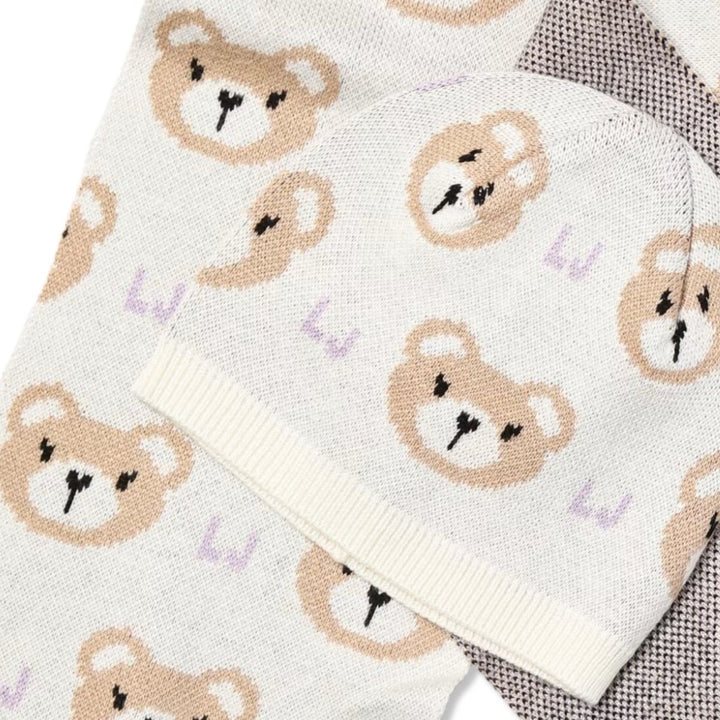 Baby Girls Cream Bear-Motif Beanie Hat Set