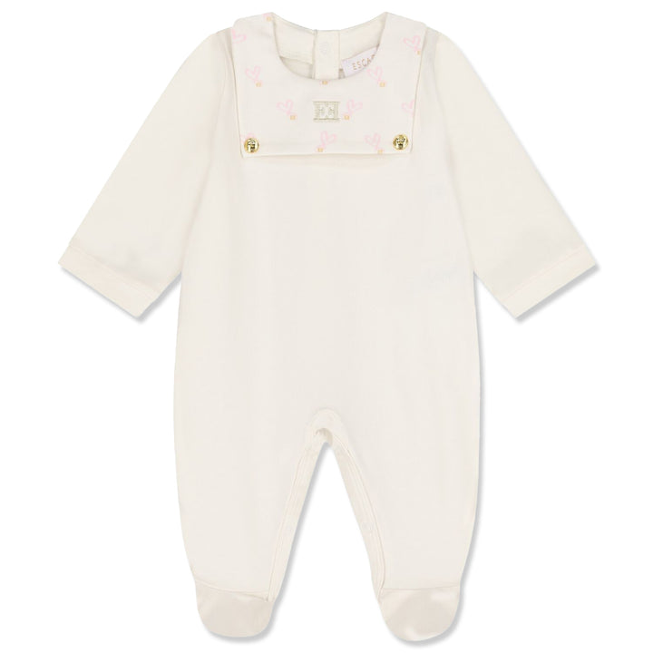 This Escada cream romper for baby girls features an elegant embroidered logo, blending charm with comfort. Made from 93% cotton and 7% elastane, it offers a soft feel and gentle stretch for ease of movement.
