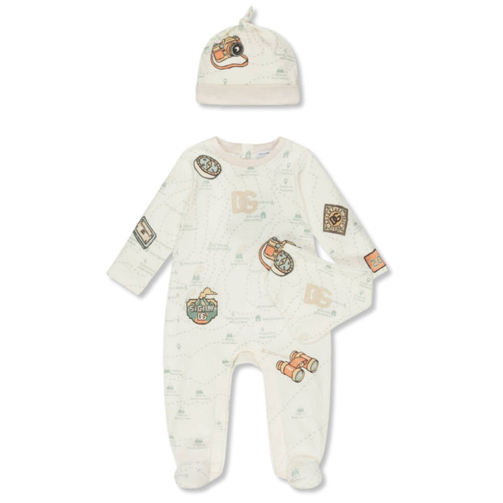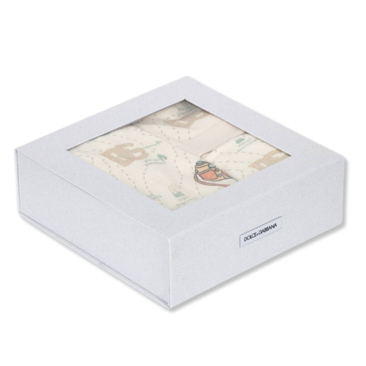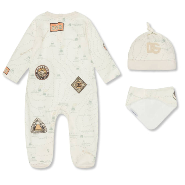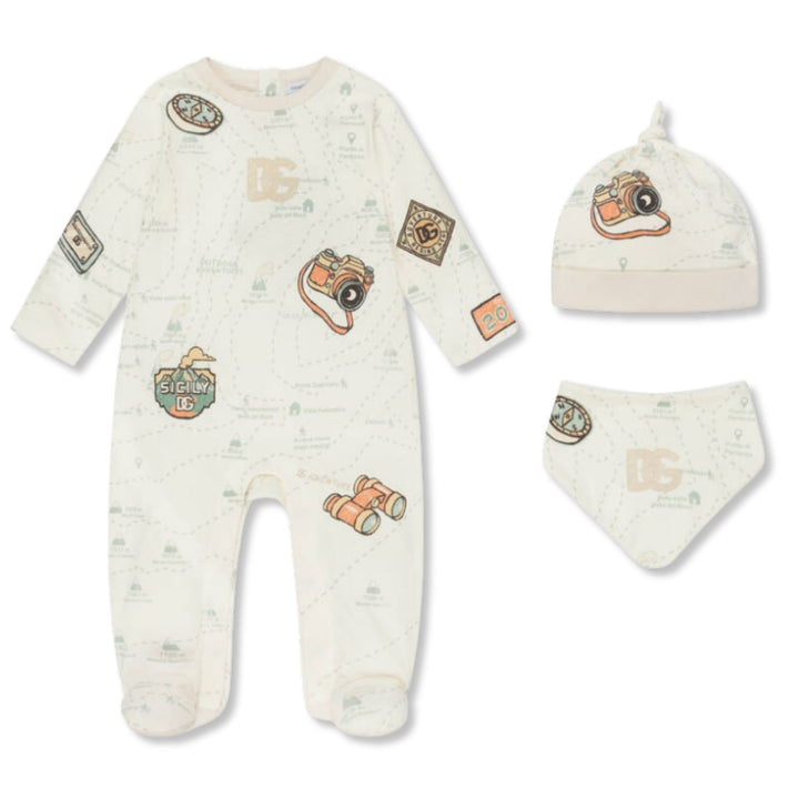 Baby girls cream graphic-print rompers set of 3 by Dolce & Gabbana crafted from ultra-soft cotton featuring playful logo and motif prints, offering comfort and luxury for everyday wear.