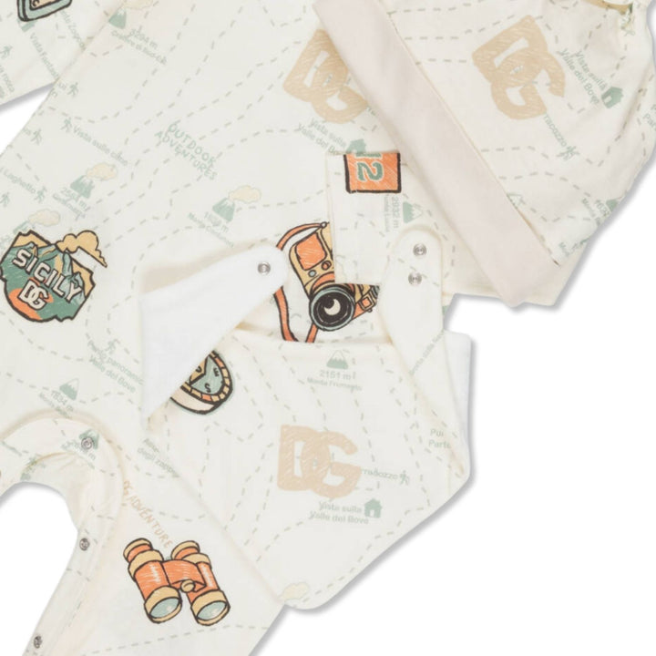 Baby girls cream graphic-print rompers set of 3 by Dolce & Gabbana crafted from ultra-soft cotton featuring playful logo and motif prints, offering comfort and luxury for everyday wear.