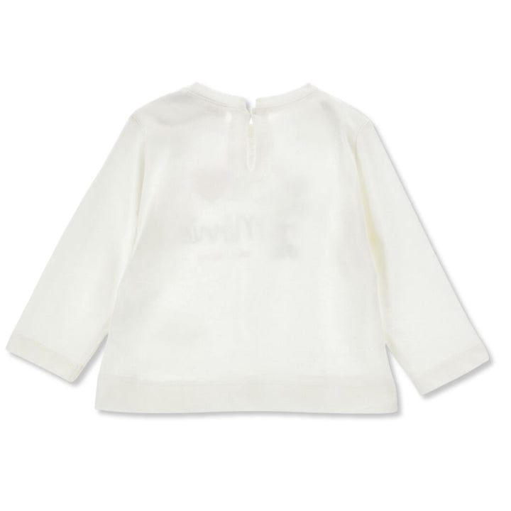 Soft and stylish, this cream Monnalisa T-shirt features a charming logo graphic, perfect for everyday wear with a touch of designer flair.