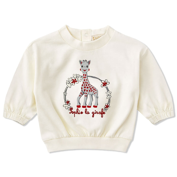 Stylish and snug, this cream sweatshirt showcases the Sophie La Girafe logo print, crafted from soft fabric for a cozy, everyday look.