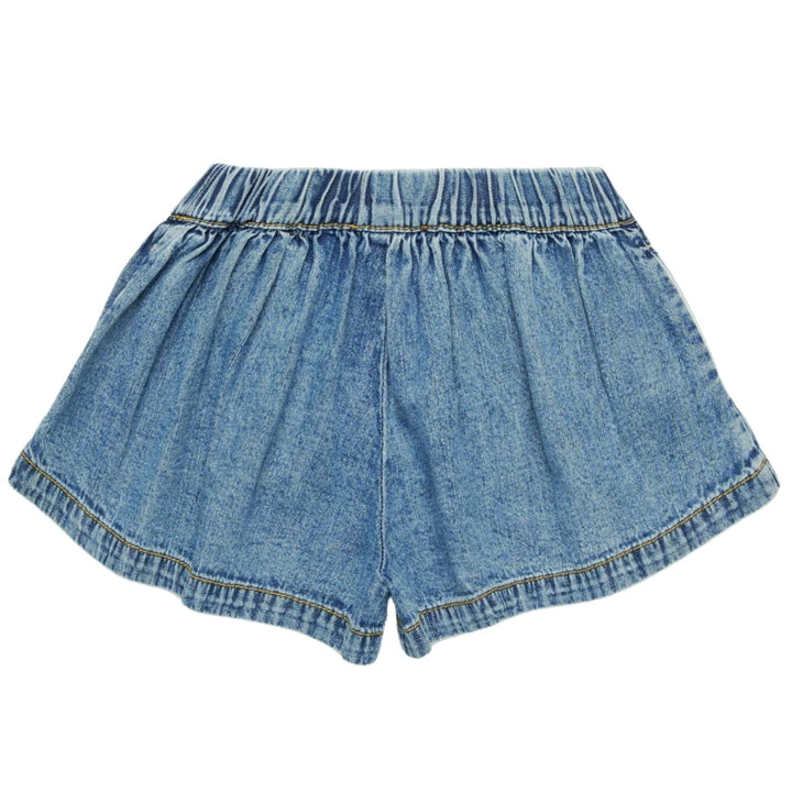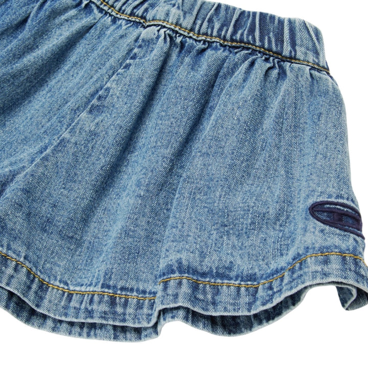Light blue denim shorts. Elasticated waistband. They feature the Iconic Oval D logo embroidered in contrasting color on the front. Color contrasting seams.