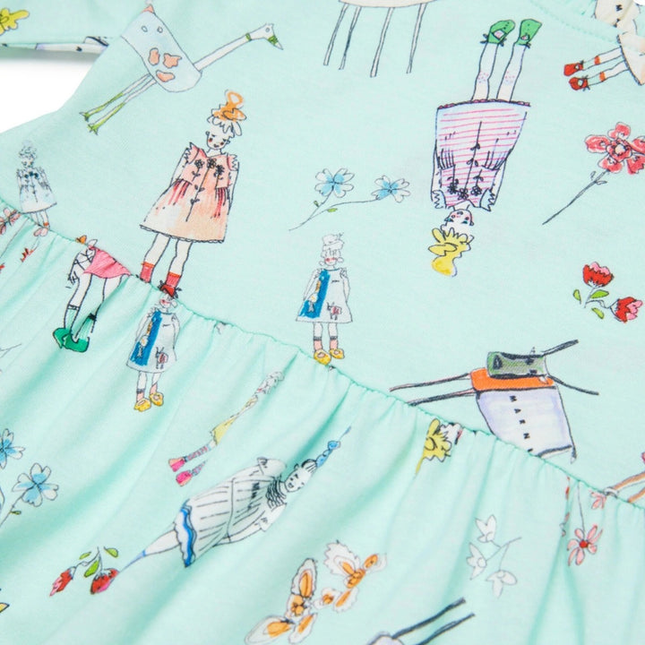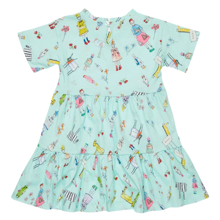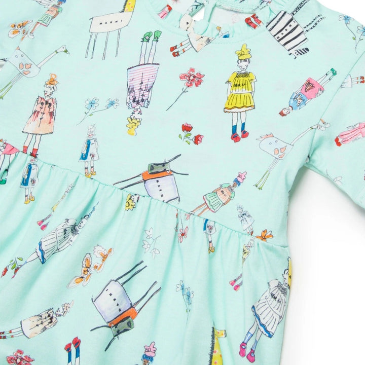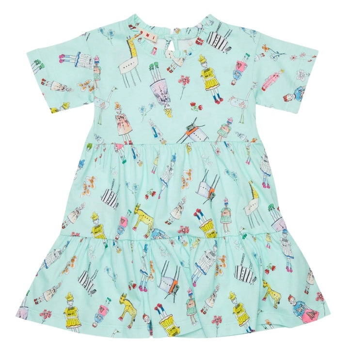 Short-sleeved dress in jersey with Rainbow Day all-over print. Ruffles on crew-neck. Ruffles along the garment. Drop closure on back. Made of cotton. Any differences between the garment photographed and the one you will receive are a symbol of the fine workmanship, quality and uniqueness of the product.