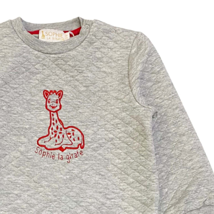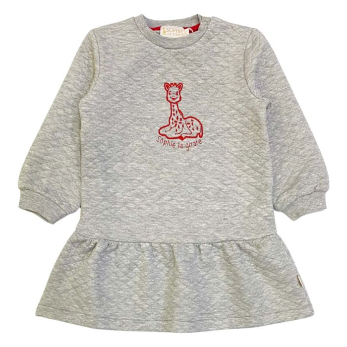 Charming grey dress featuring a delicate embroidered Sophie la Girafe logo print, crafted from soft fabric for comfort and style on any occasion.