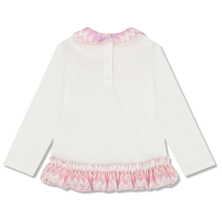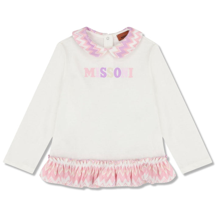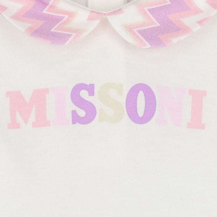 Baby Girls ivory flared pattern logo-print T-shirt by Missoni crafted from soft cotton with the brands signature multicolor logo and a subtle flared hemline for a playful yet elegant silhouette.