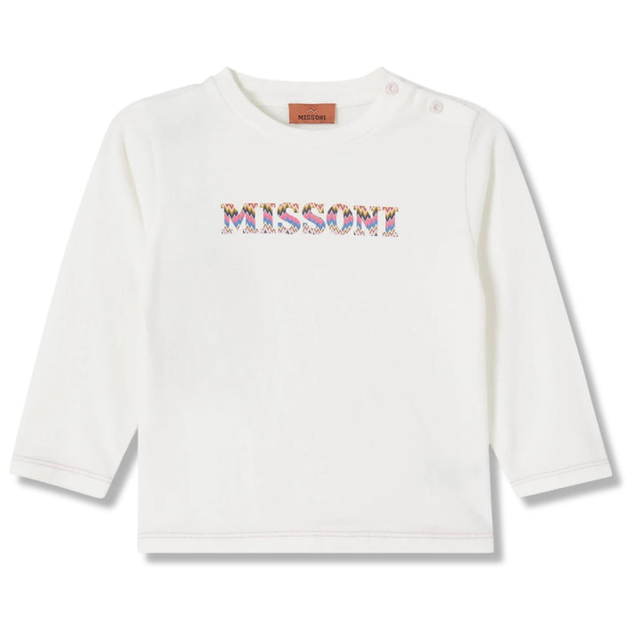 Baby Girls ivory logo-print T-shirt by Missoni a soft cotton tee featuring the brands signature colorful logo across the chest, classic crew neckline, and short sleeves for a chic everyday statement.
