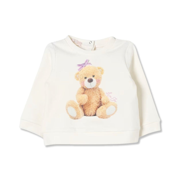 Baby Girls Ivory Teddy Bear-Print Sweatshirt