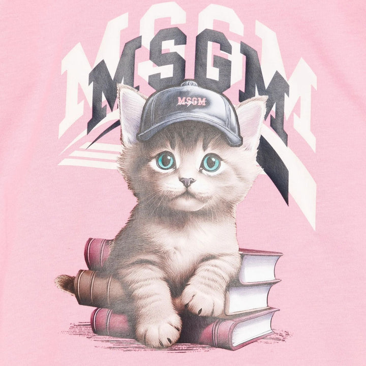 Baby Girls Pink Cat Print T Shirt made from soft and gentle fabric for all day comfort. Featuring an adorable cat print on the front, short sleeves, and a classic round neckline, this tee adds a cute and playful touch to everyday outfits. Perfect for pairing with leggings, shorts, or skirts.