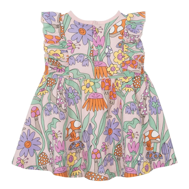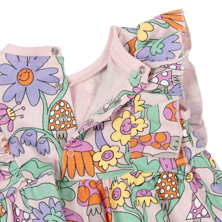 So sweet for baby girls a soft pink jersey dress by Stella McCartney Kids. Printed with a gorgeous fairy garden design, this comfortable dress is made from soft organic cotton jersey for a more sustainable choice.