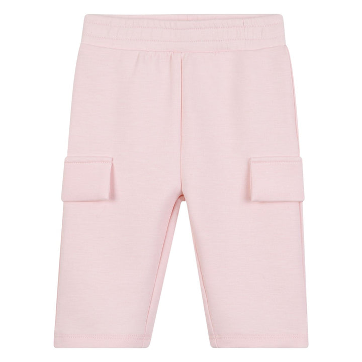 Baby Girls Pink Embroidered-Logo tracksuit This pink tracksuit features an embroidered logo for a stylish touch and is made from a soft, comfortable blend of 64% Polyester, 29% Viscose, and 7% Elastane, perfect for everyday wear.