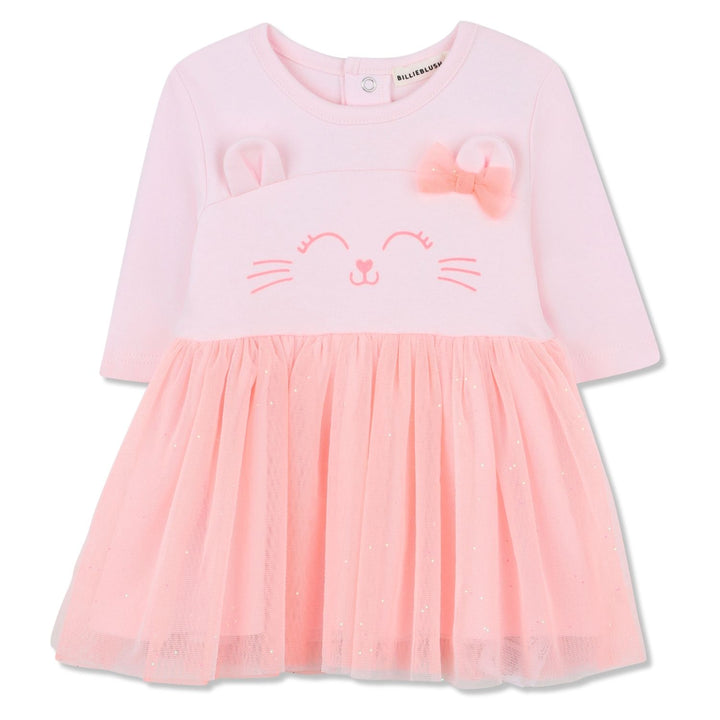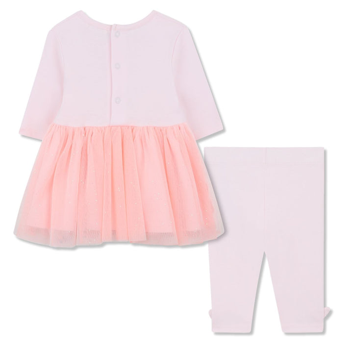 So cute for baby girls, a comfortable pink cotton jersey dress and leggings set from Billieblush. Made in soft and stretchy jersey, the dress has an adorable cat design on the front, with neon pink print, little 3D ears and a tulle bow applique. Trim