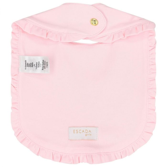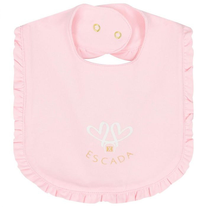 The Escada Baby Girls Pink Logo-Print Bib is made from 93% cotton and 7% elastane for softness and comfort. Designed in a gentle pink shade, it features the signature Escada logo print for a stylish and practical accessory.