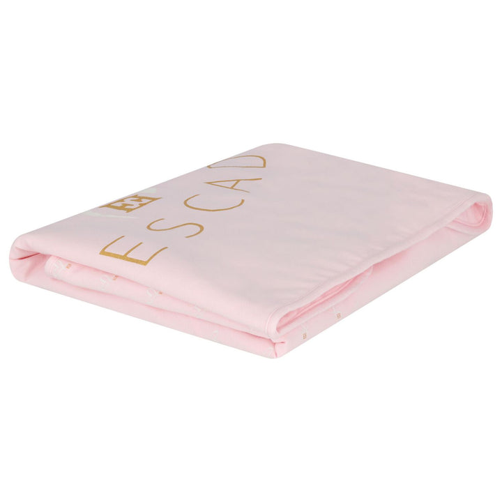 The Escada Baby Girls Pink Logo-Print Blanket is crafted from 95% cotton and 5% elastane for a soft, breathable, and slightly stretchy feel. Featuring a charming pink hue and signature logo print, it offers both comfort and style for your little one.
