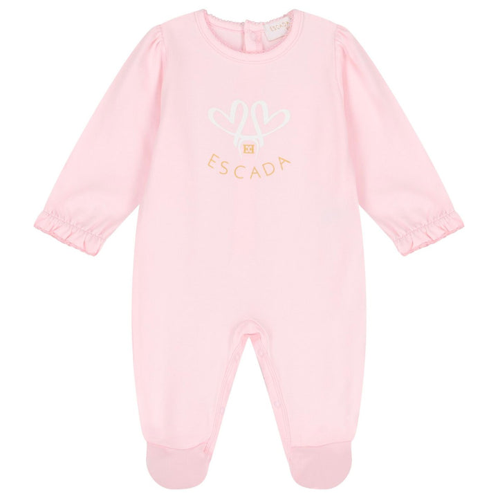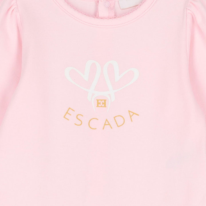 This Escada pink romper for baby girls features a stylish logo print, combining playful design with comfort. Made from 93% cotton and 7% elastane, it offers a soft touch and flexible fit.