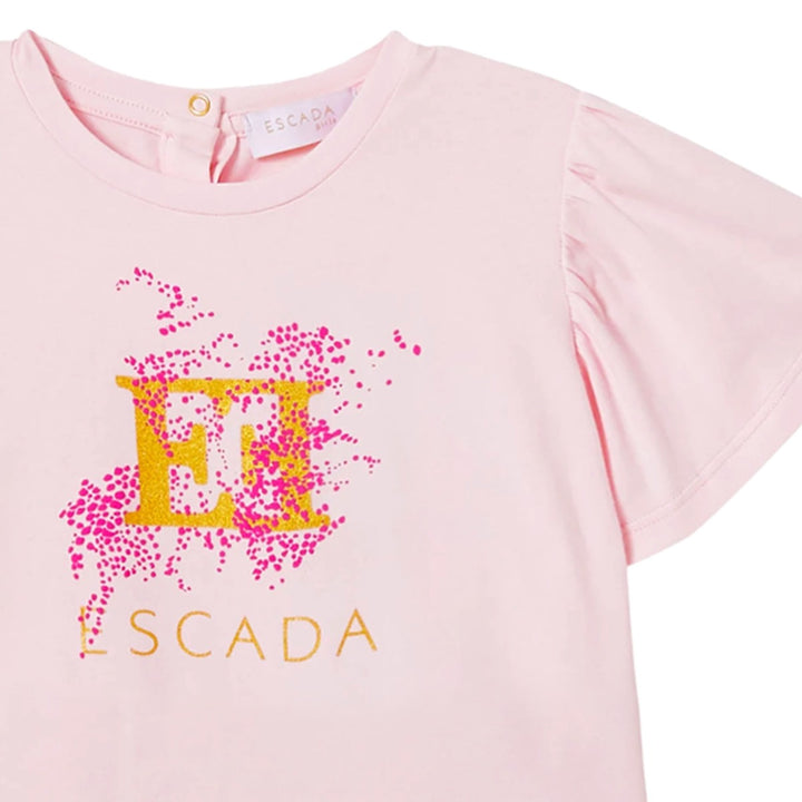 This Escada pink T-shirt for baby girls features a stylish logo print, combining a modern look with comfort. Crafted from 95% cotton and 5% elastane, it offers softness and a comfortable stretch.