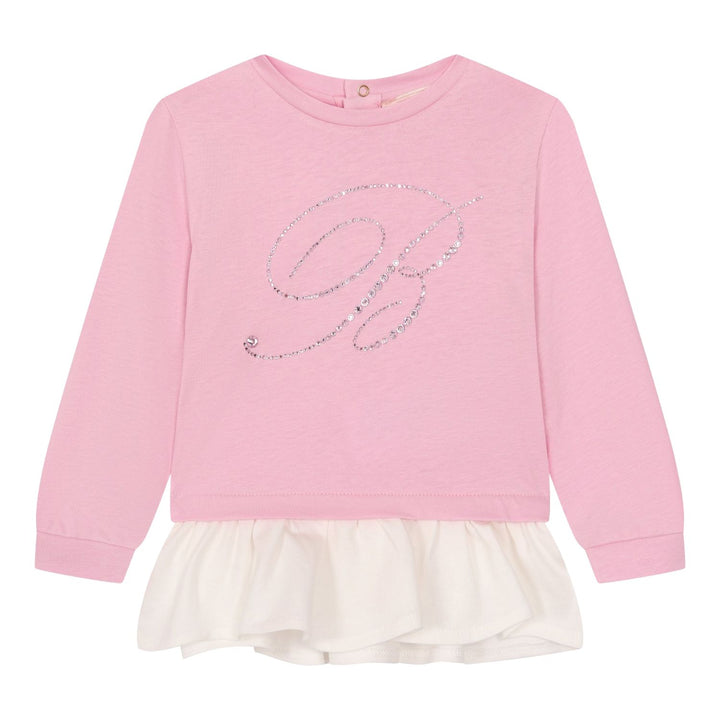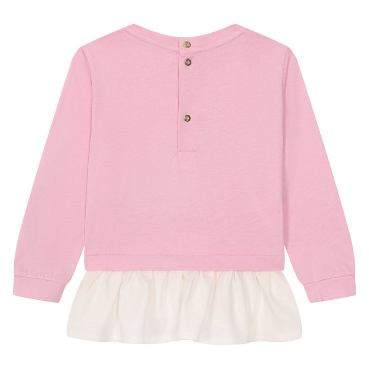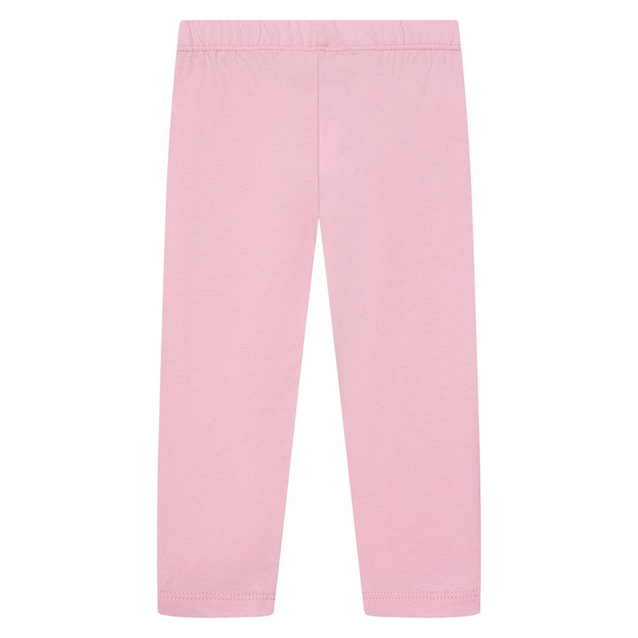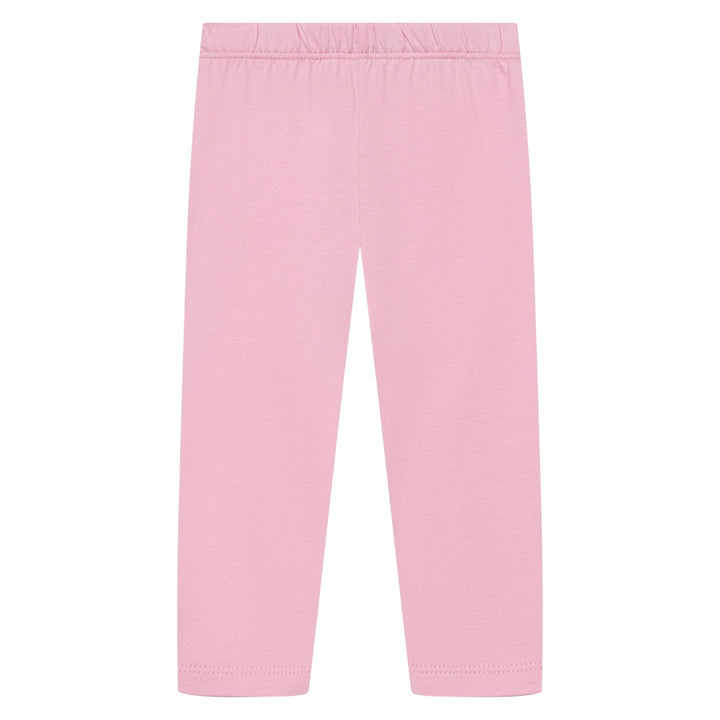 A soft and stylish pastel-pink trouser set for baby girls featuring a cute logo print top paired with comfy matching bottoms. Perfect for everyday wear with a cozy premium feel.