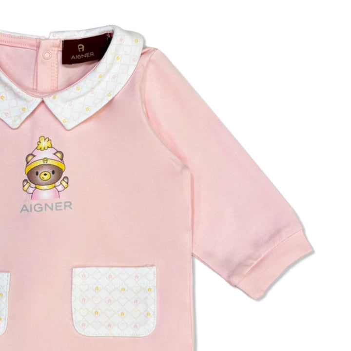 Baby Girls Pink Logo Romper With 2 Pockets