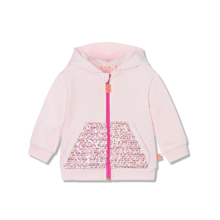 An adorable zip-up hoodie in pink for baby girls by Billieblush, decorated with gold, iridescent and pink sequins. Made in a comfortable, mid-weight jersey, this long-sleeved top has floppy bunny rabbit ears on the hood, little pockets on the front,