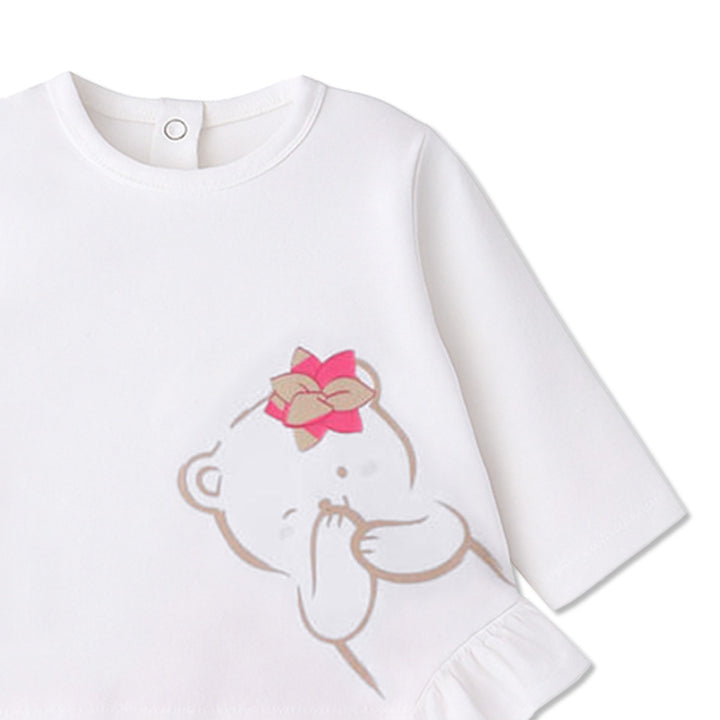 Dress your little one in adorable comfort with the Minibanda Teddy Bear Outfit for girls. Made from a soft blend of 95% cotton and 5% elastane, this outfit is gentle on the skin and allows for easy movement. The breathable cotton fabric ensures all-d