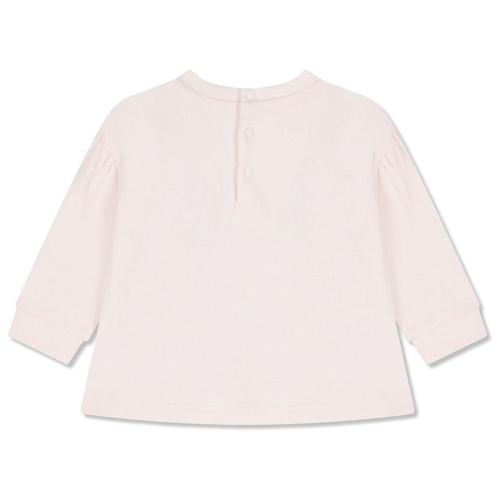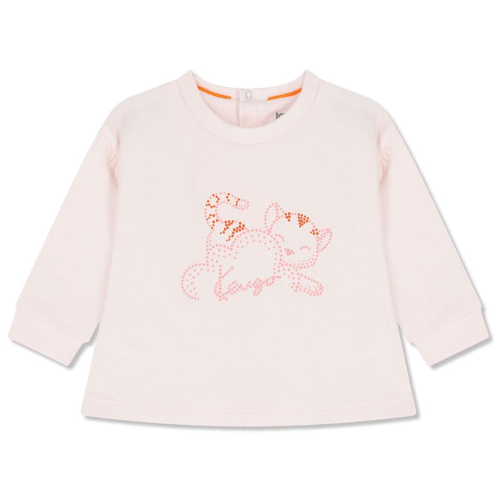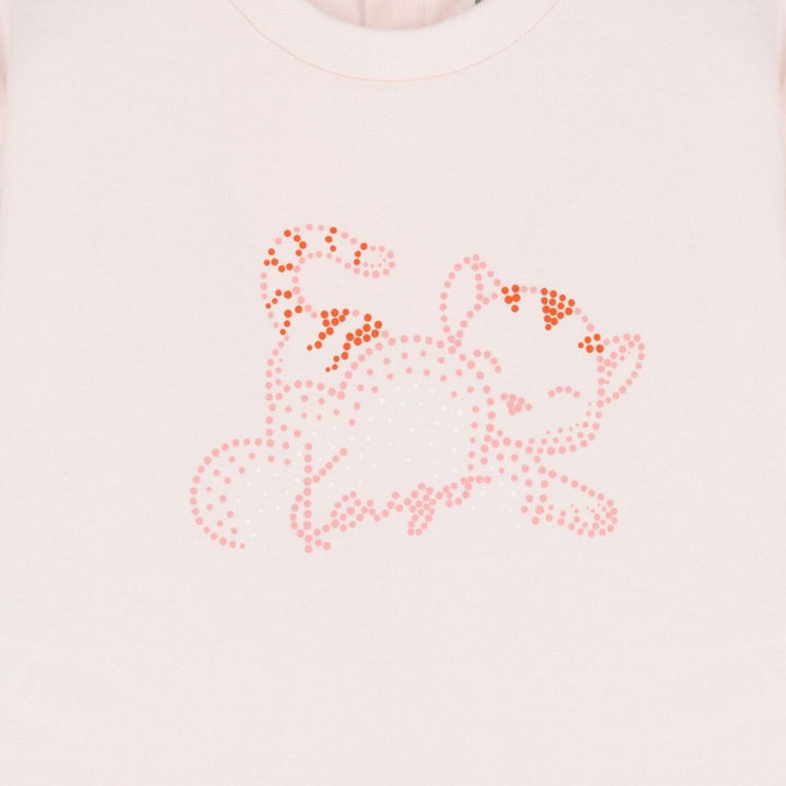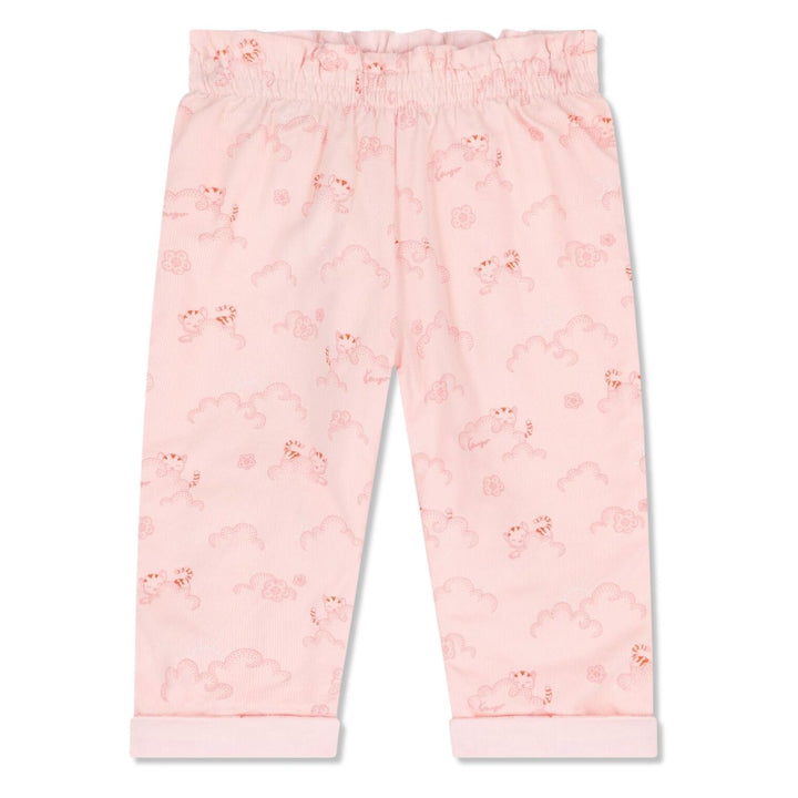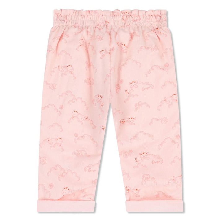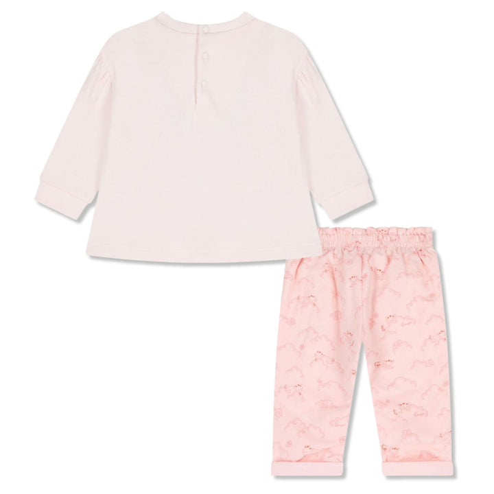 Pink trousers set for baby girls by KENZO KIDS. Made from soft cotton, the long sleeve features a cute tiger and the brands logo print on the front. Fastens with poppers at the back. Matching pink trousers with all-over clouds and logo printed patter