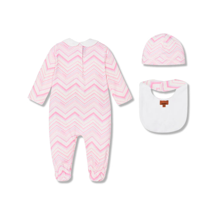 Baby Girls Pink Zigzag Romper ( Set of 3 )