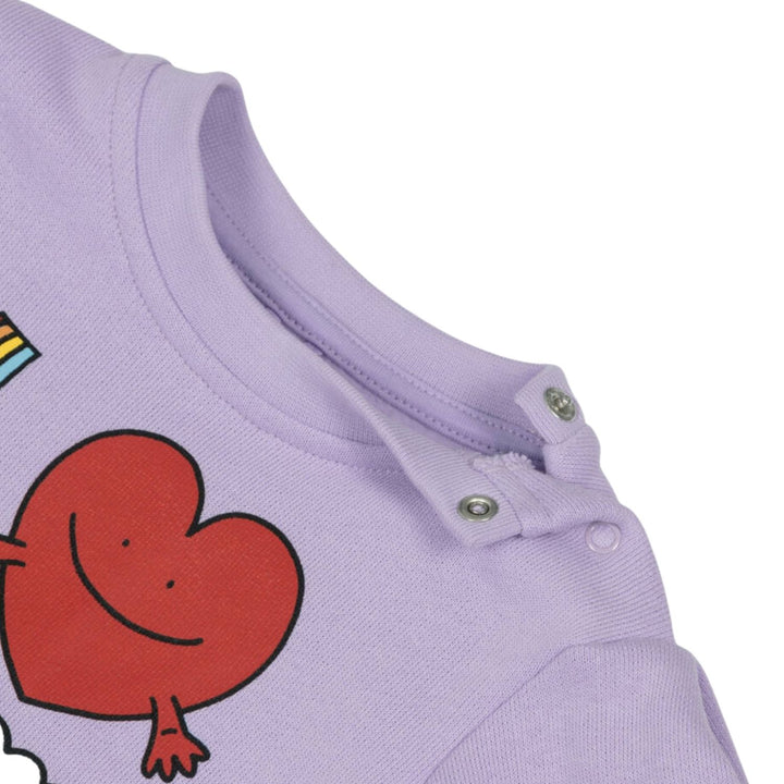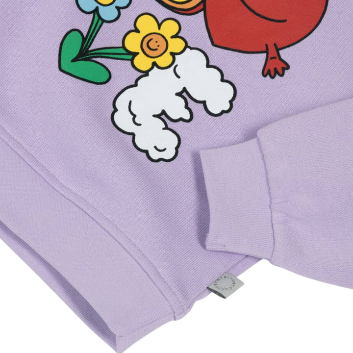 Lilac purple sweatshirt by Stella McCartney Kids is a lovely wardrobe addition for little girls. Featuring a playful design with a cheerful heart and flower print, making the word love. Crafted from soft cotton jersey, it offers comfort and warmth, i
