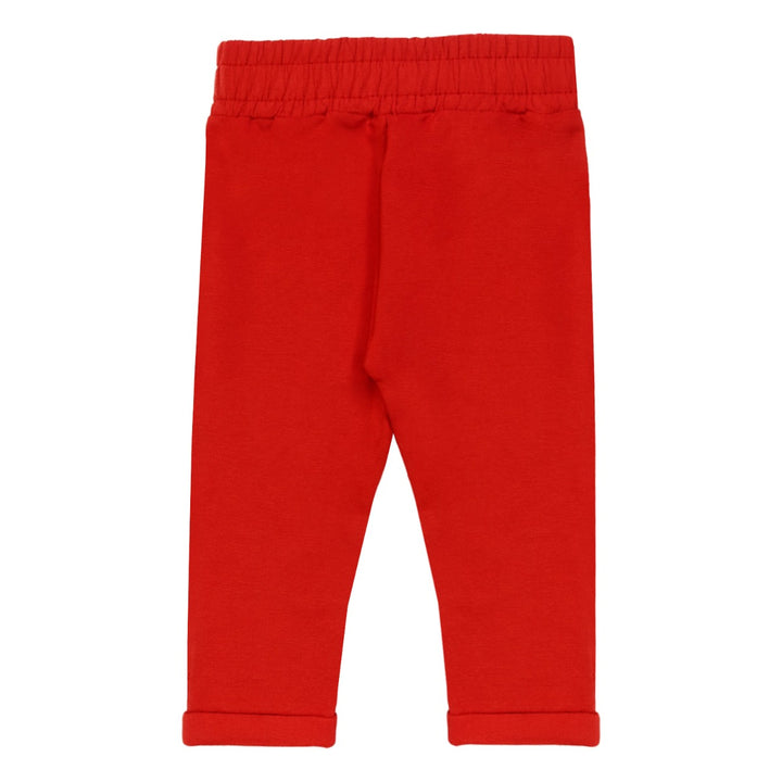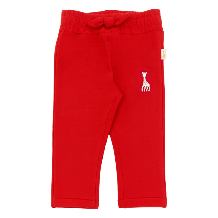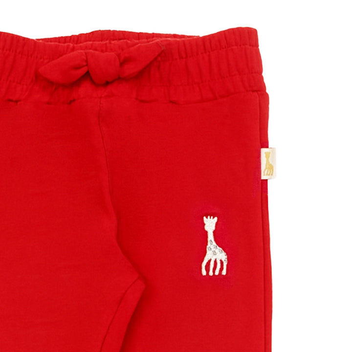 Soft and comfortable red leggings featuring an elegant embroidered Sophie la Girafe logo, perfect for everyday wear with a touch of charm.