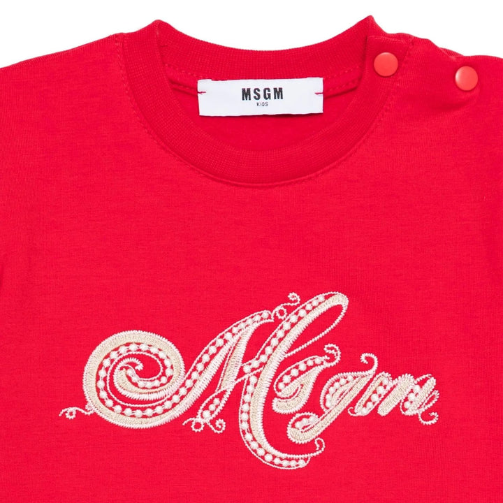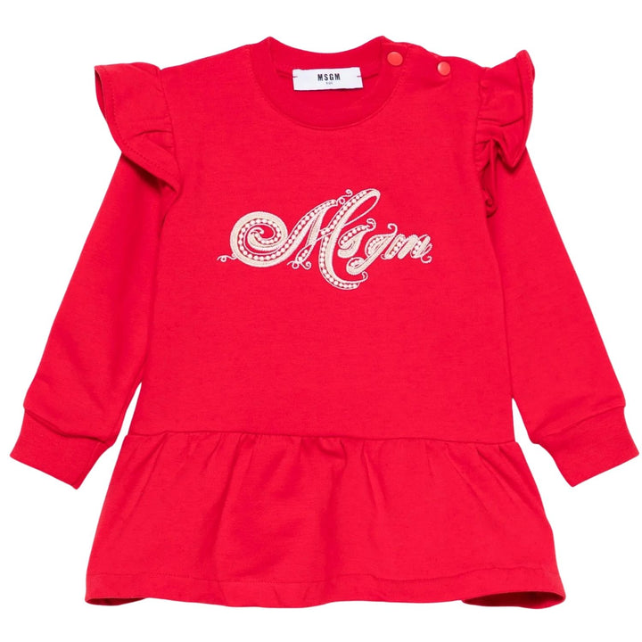 Baby Girls Red Embroidered Logo Print Dress crafted from soft and comfortable fabric for gentle all day wear. Featuring delicate embroidered logo detailing, a charming red color, and a cute flared silhouette, this dress offers a sweet and stylish loo