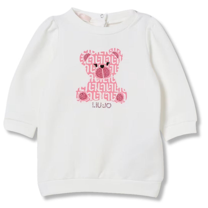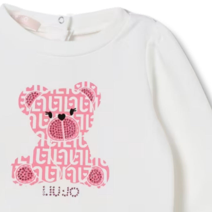 This adorable white T-shirt features a charming bear logo print on the front, bringing a playful touch to your baby girls everyday wardrobe. Made from soft cotton with a hint of stretch, it ensures gentle comfort and flexibility for all-day wear.