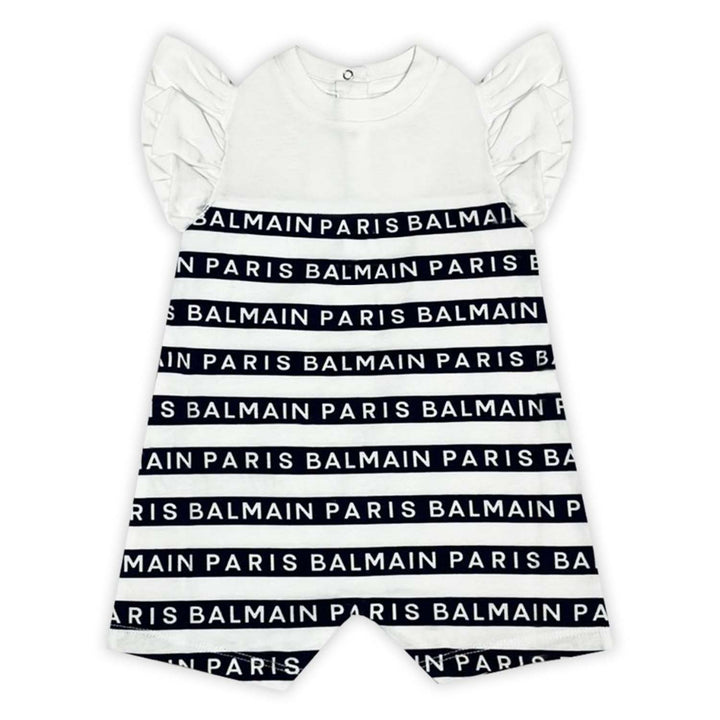 Baby Girls White & Black Stripes Romper