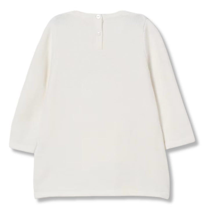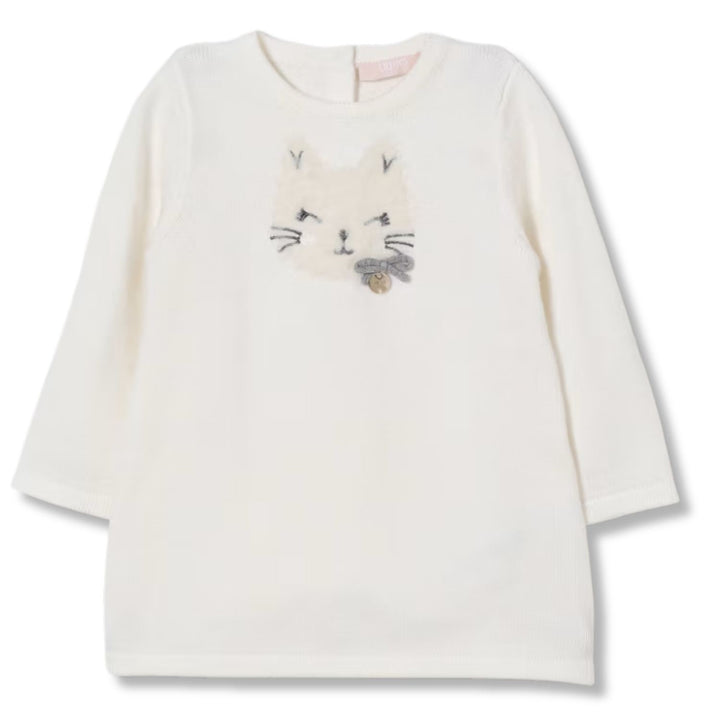 This charming white dress features a cute cat-face embellishment on the front, adding a playful touch to her outfit. Made from soft viscose blend fabric, it ensures a comfortable and stylish fit for any occasion.