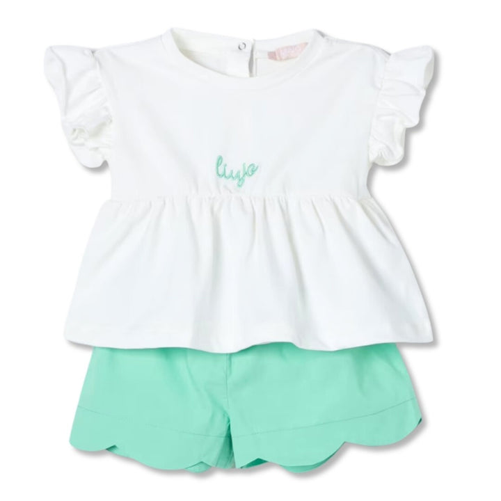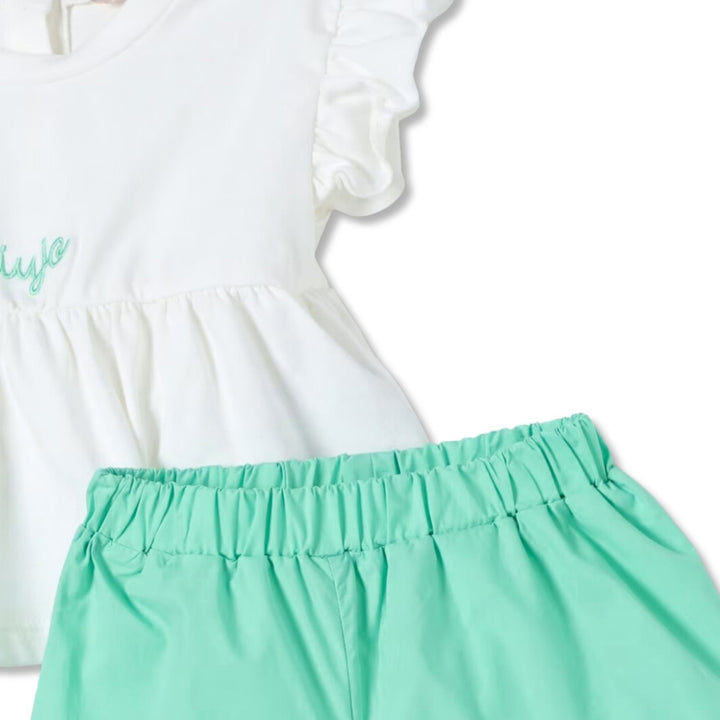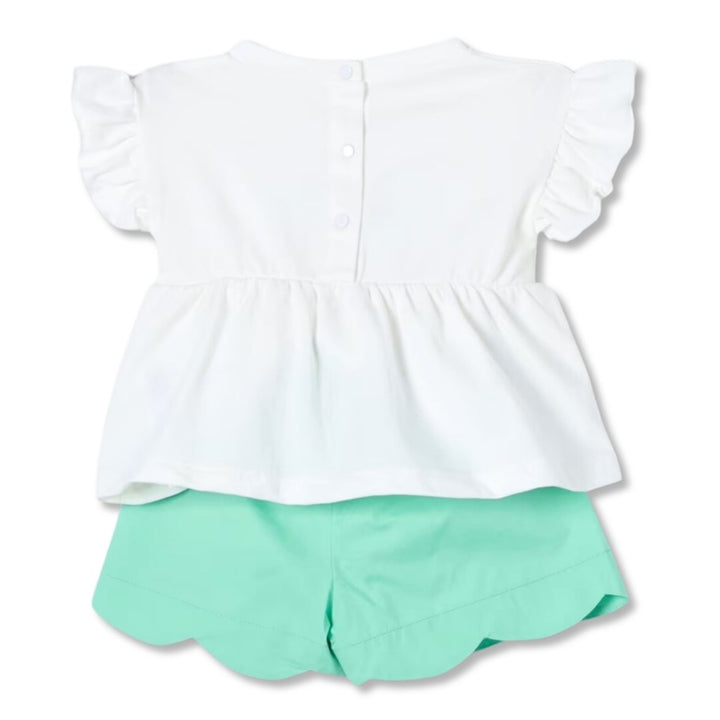 Baby Girls White & Green Cotton Shorts Set