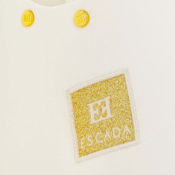 This Escada white dress features a refined logo patch, blending elegance with comfort. Made from 95% cotton and 5% elastane, it offers a soft touch and gentle stretch for ease of movement.