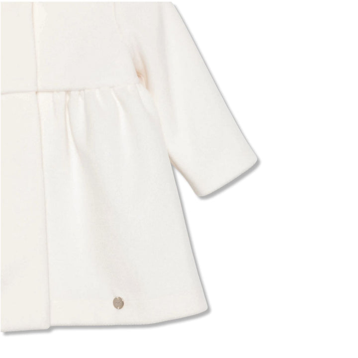 This sweet white dress is adorned with a stylish logo patch, adding a modern touch to your baby girls wardrobe. Made from soft, breathable cotton with a hint of stretch, it ensures gentle comfort and ease of movement. Perfect for both everyday wear and special outings.