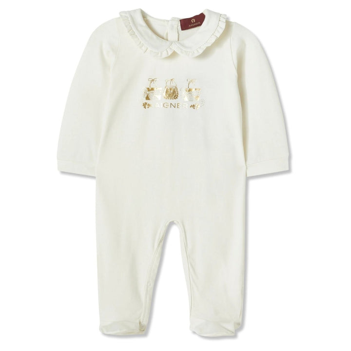 Soft and sweet, this white logo-print romper from Aigner is perfect for everyday comfort. Made from a breathable cotton blend with added stretch, it features a delicate logo print and an easy snap closure ideal for dressing your baby girl in style.