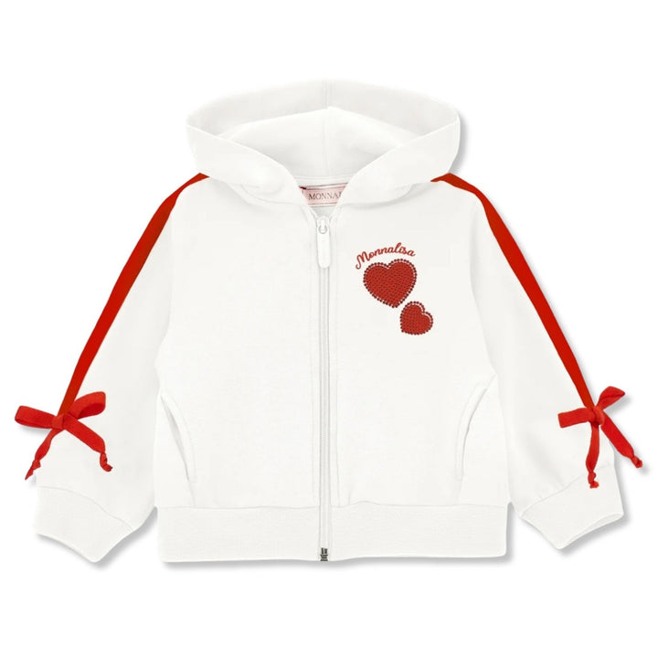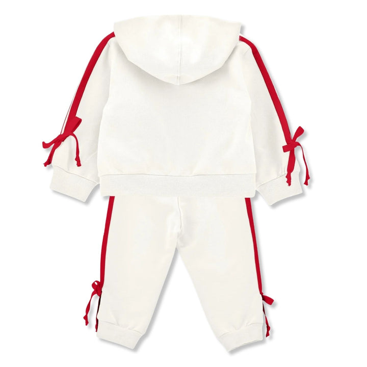 Adorable white tracksuit with Monnalisa’s signature logo print — soft, stylish, and perfect for keeping baby girls cozy in luxury comfort.