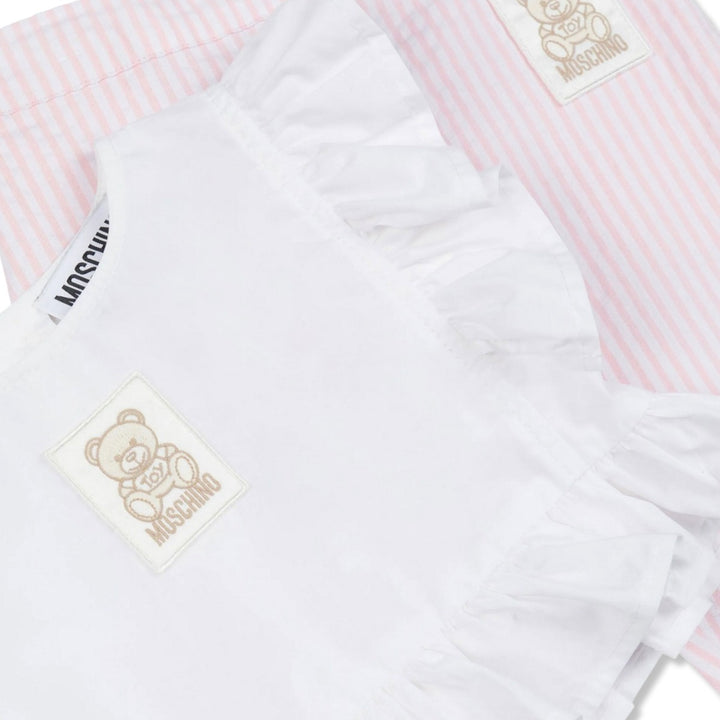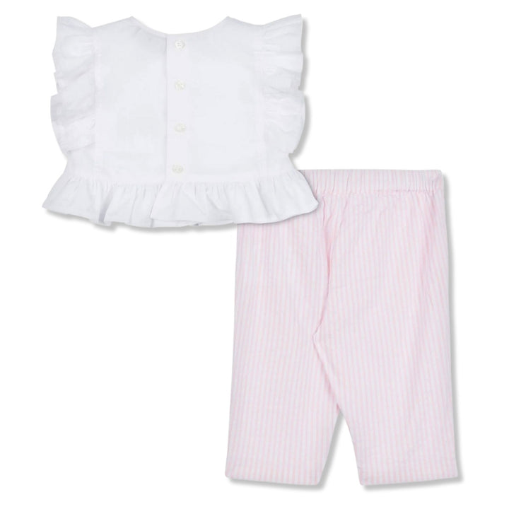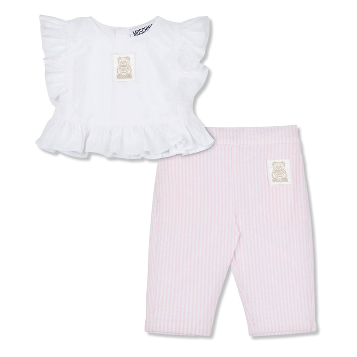 Baby Girls White & Pink Logo-Patch Trouser Set