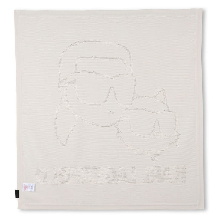 Soft beige logo-print blanket for baby boys and girls by Karl Lagerfeld, crafted from premium cotton for cozy comfort and style.